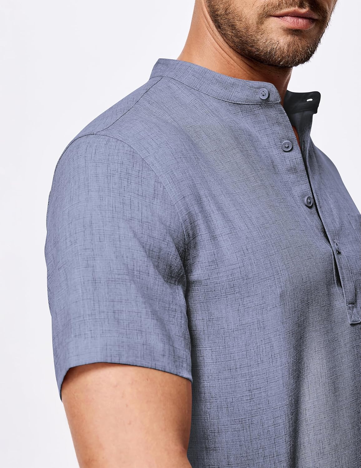 Mens Short Sleeve Linen Henley Shirts Casual Button Down Shirt Summer Beach Wear with Pocket