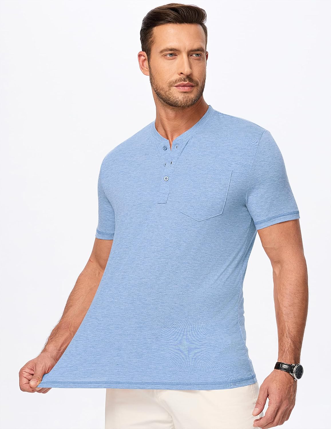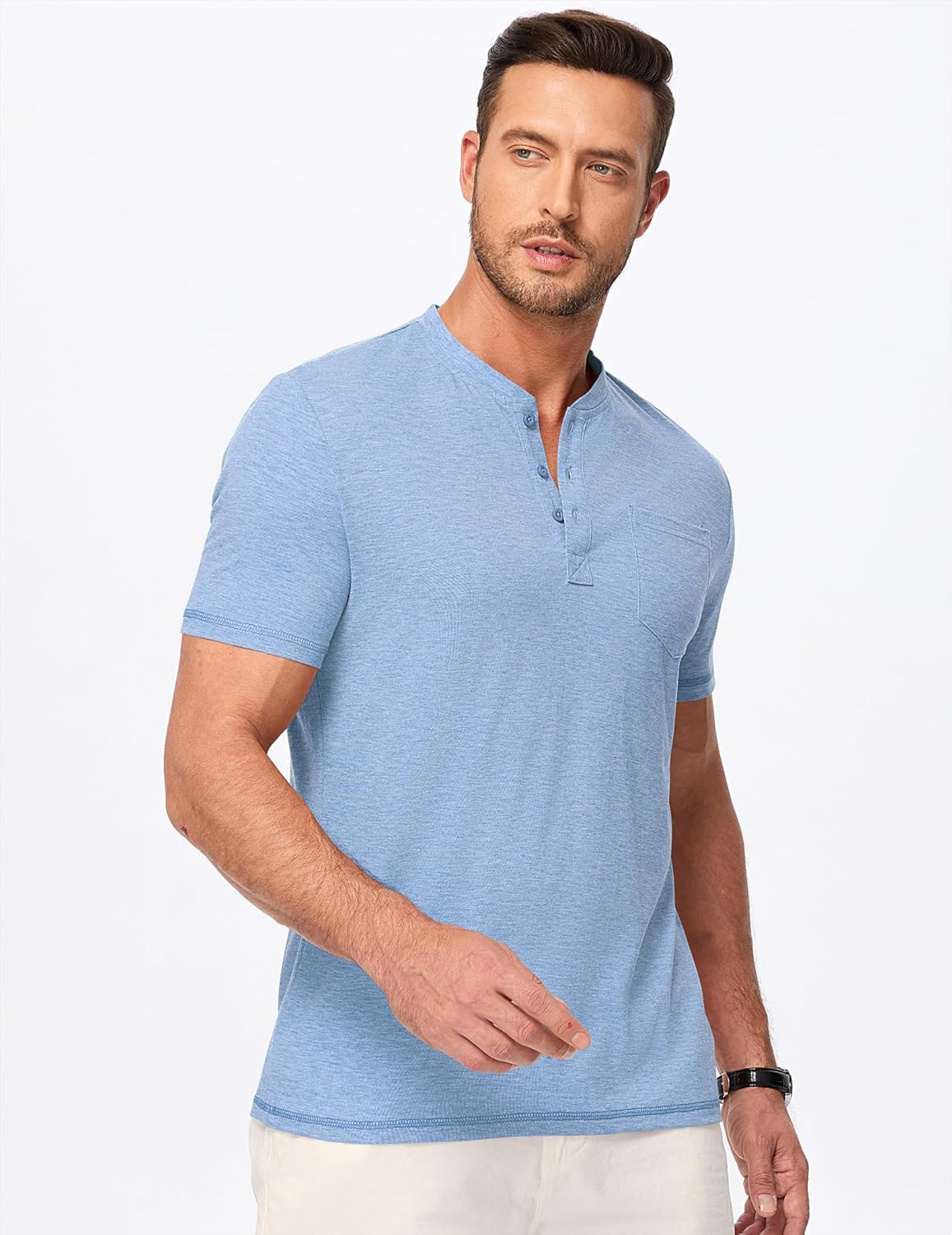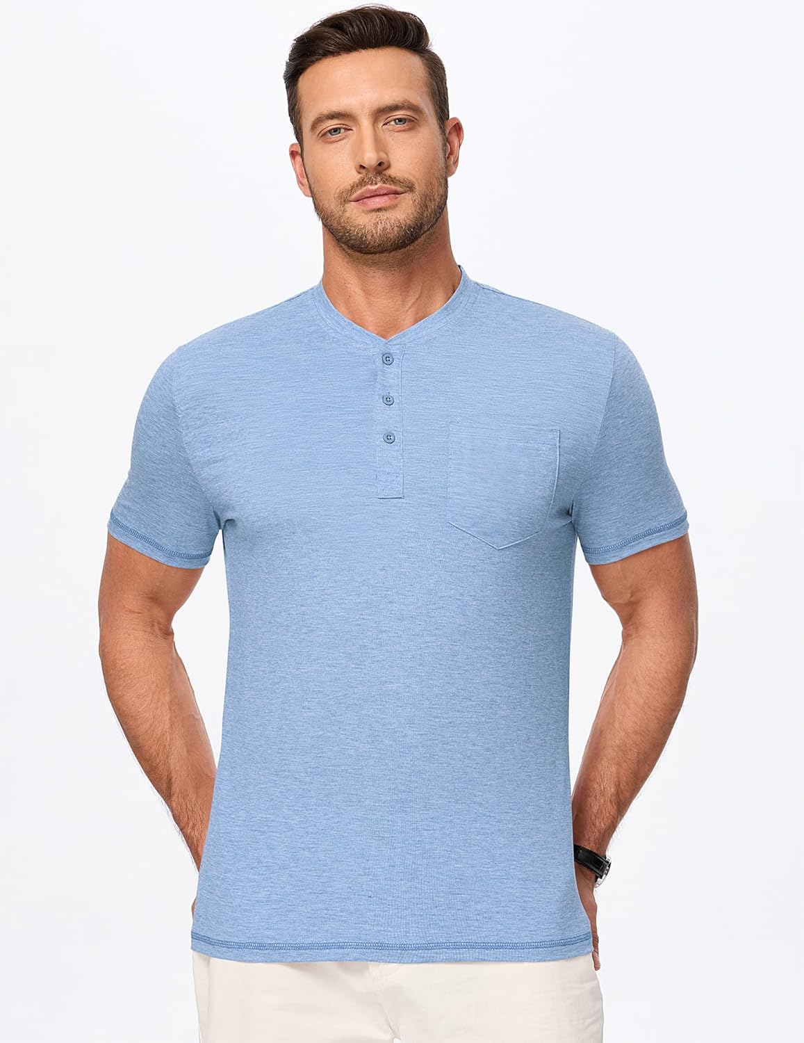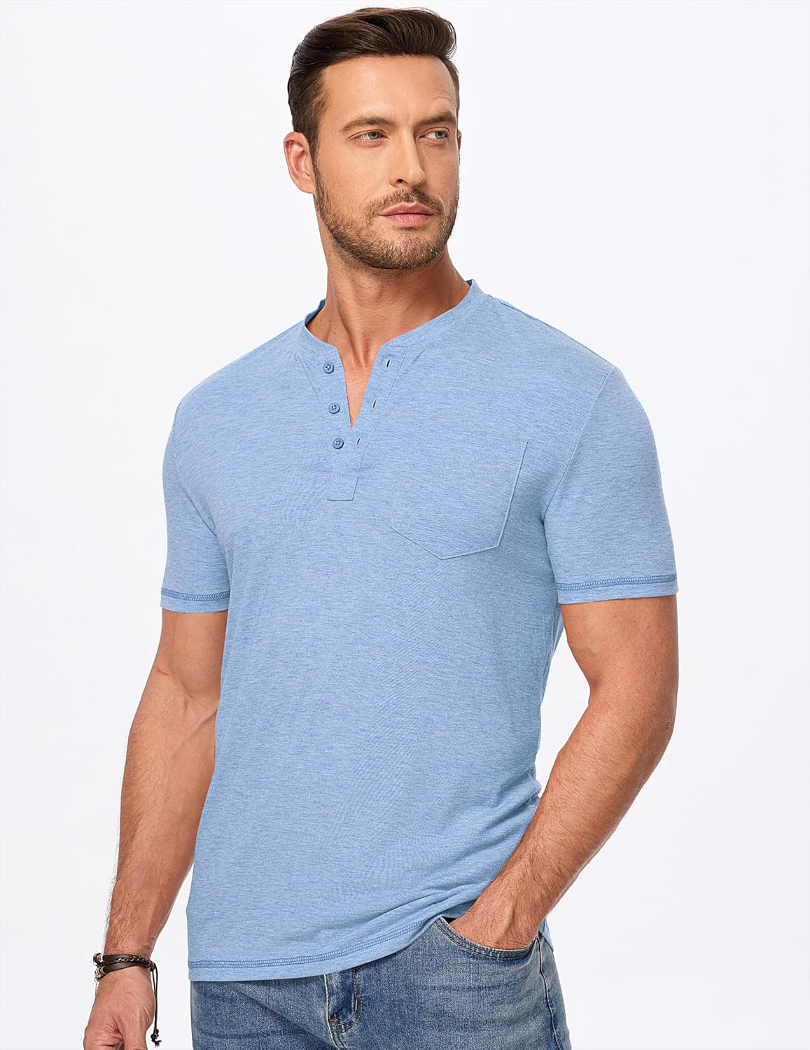 Mens Henley Shirts Short Sleeve Casual Basic Button Up Tees Pocket T Shirts for Men