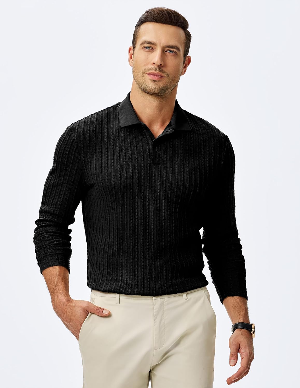 Mens Casual Polo Shirt Summer Short Sleeve Vacation Button Beach Knit Stretchy Golf Shirts