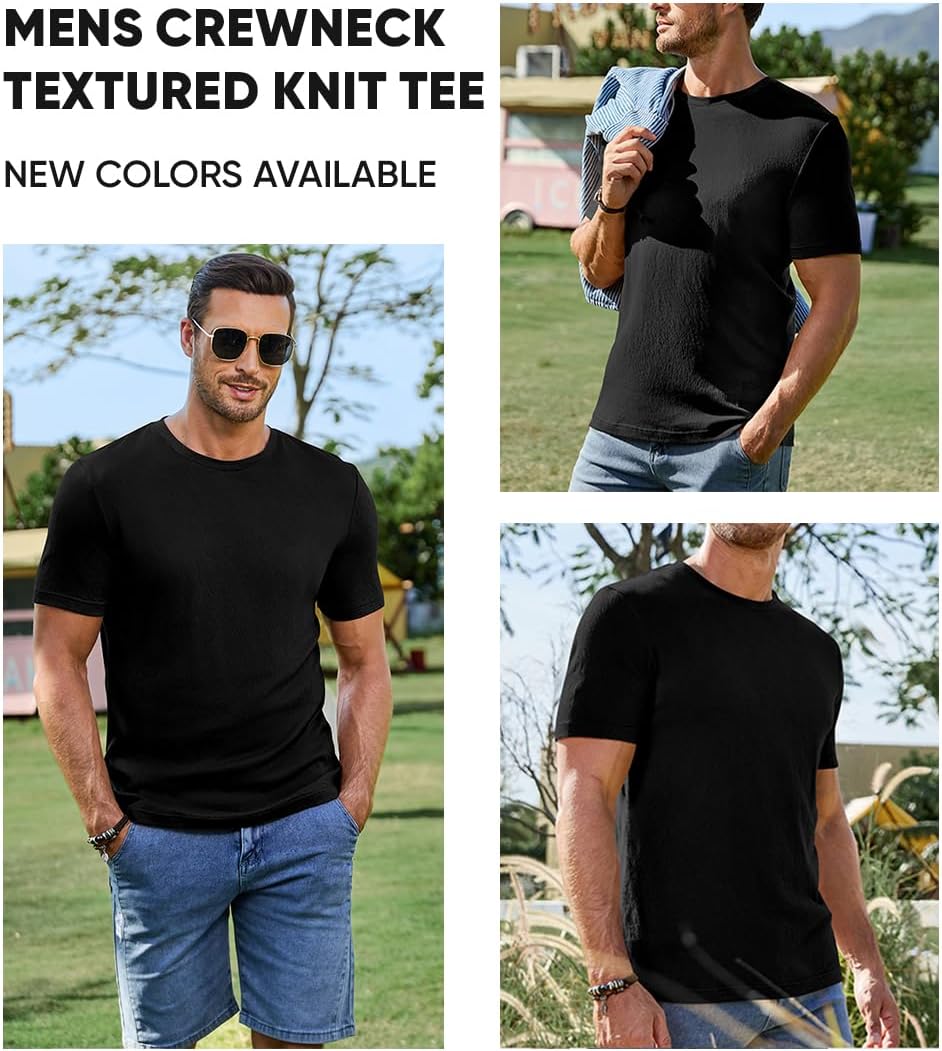 • Mens T-Shirt Short Sleeve Muscle Textured Knit Crewneck Slim T Shirt Gym Workout Athletic Tee Shirts Mens T-Shirt Short Sleeve Muscle Textured Knit Crewneck Slim T Shirt Gym Workout Athletic Tee Shirts